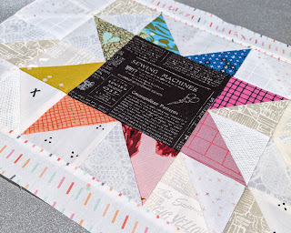 Paula's pattern is really clear, the patchwork piecing was simple and instructions for constructing the rows helped keep seams neat. Once it was pieced I decided to copy the echo quilting inside the star and then added straight lines of quilting coming from the edges of the points of the stars, to create grids. It was fun to quilt!