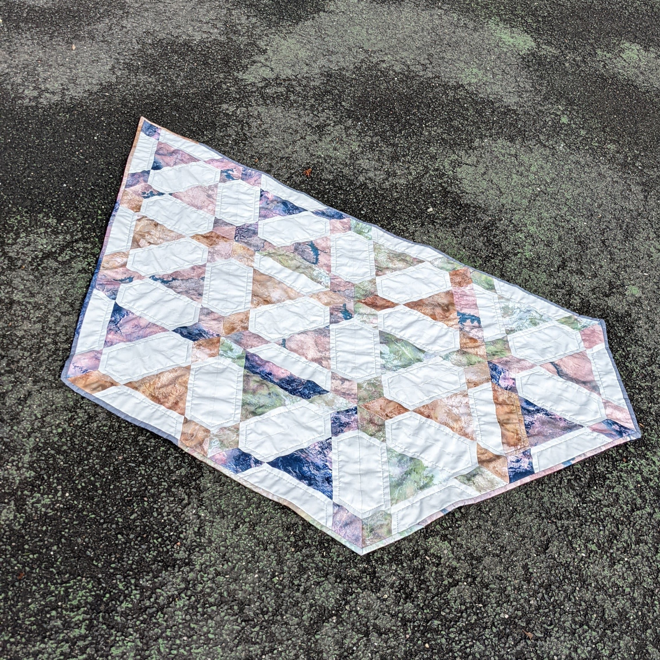 So here you can see how irregular the shape of the quilt is! As I was piecing it, it reminded me of a space buggy.
